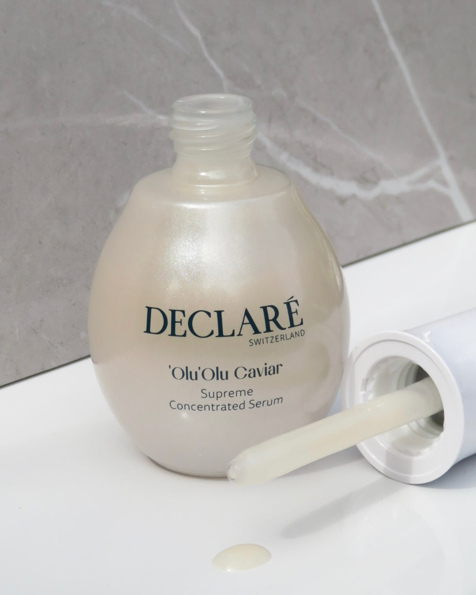 This intensive serum from the Olu'Olu Caviar facial care series by Declaré is equipped with an exclusive complex of moai caviar and valuable saffron extract for a luxurious care experience and supple, smooth skin.